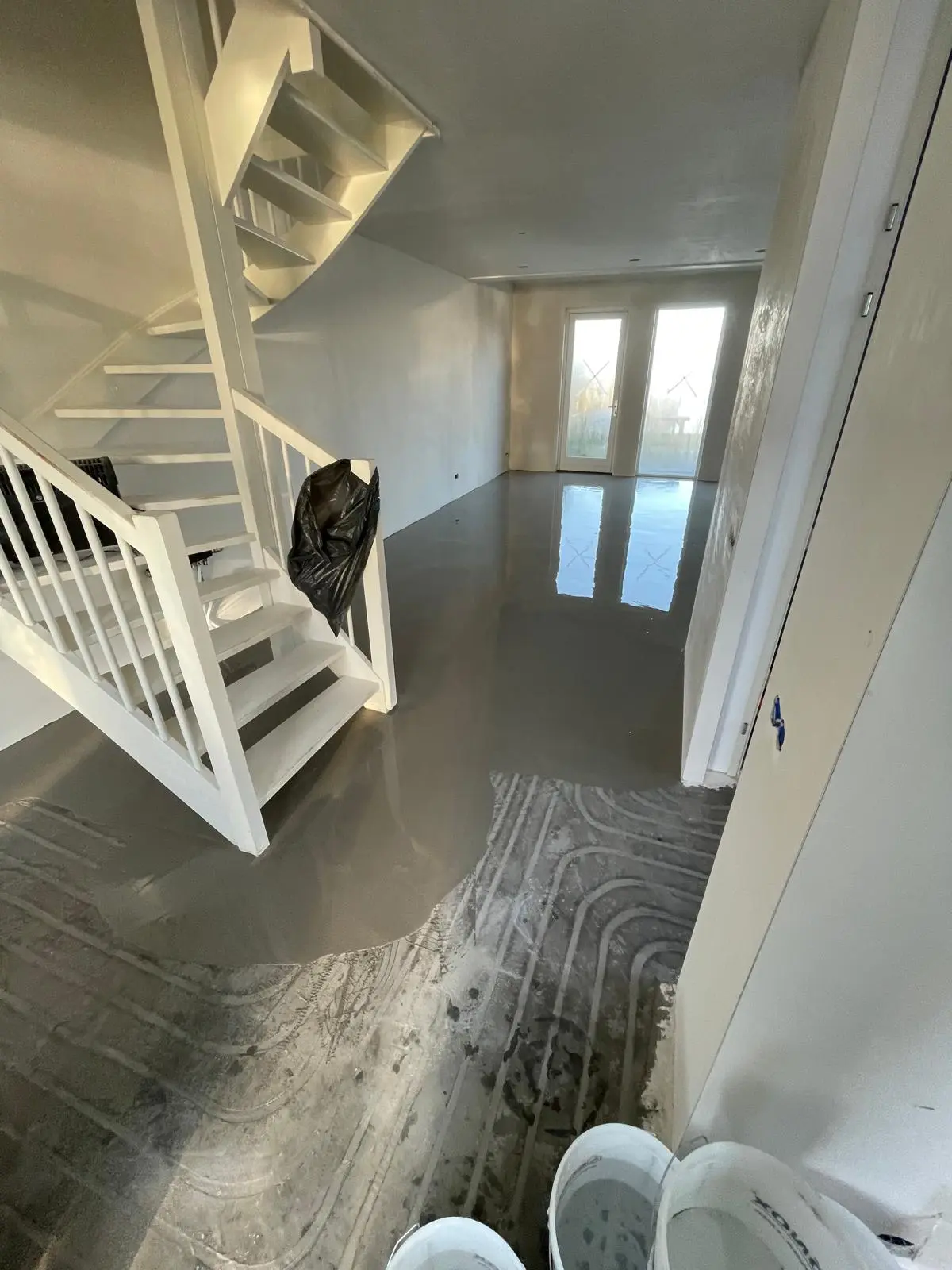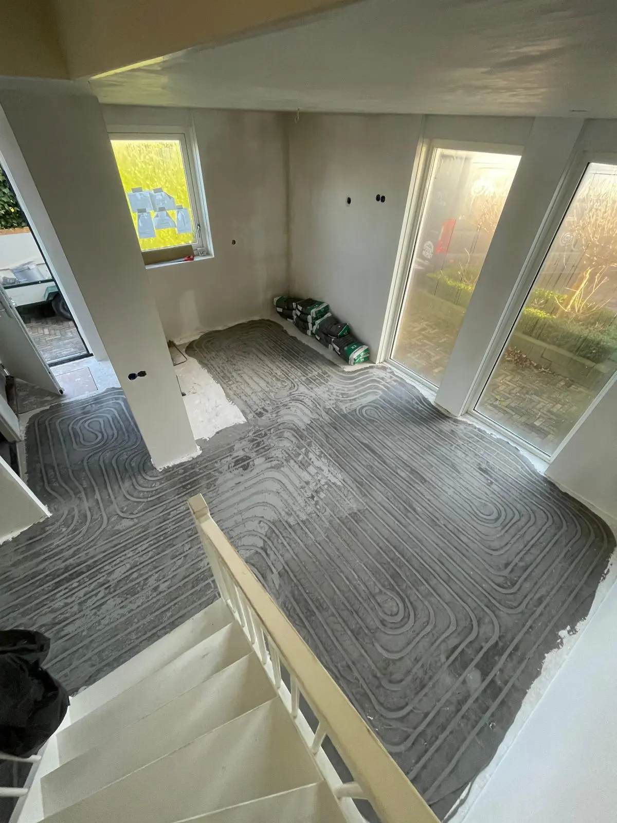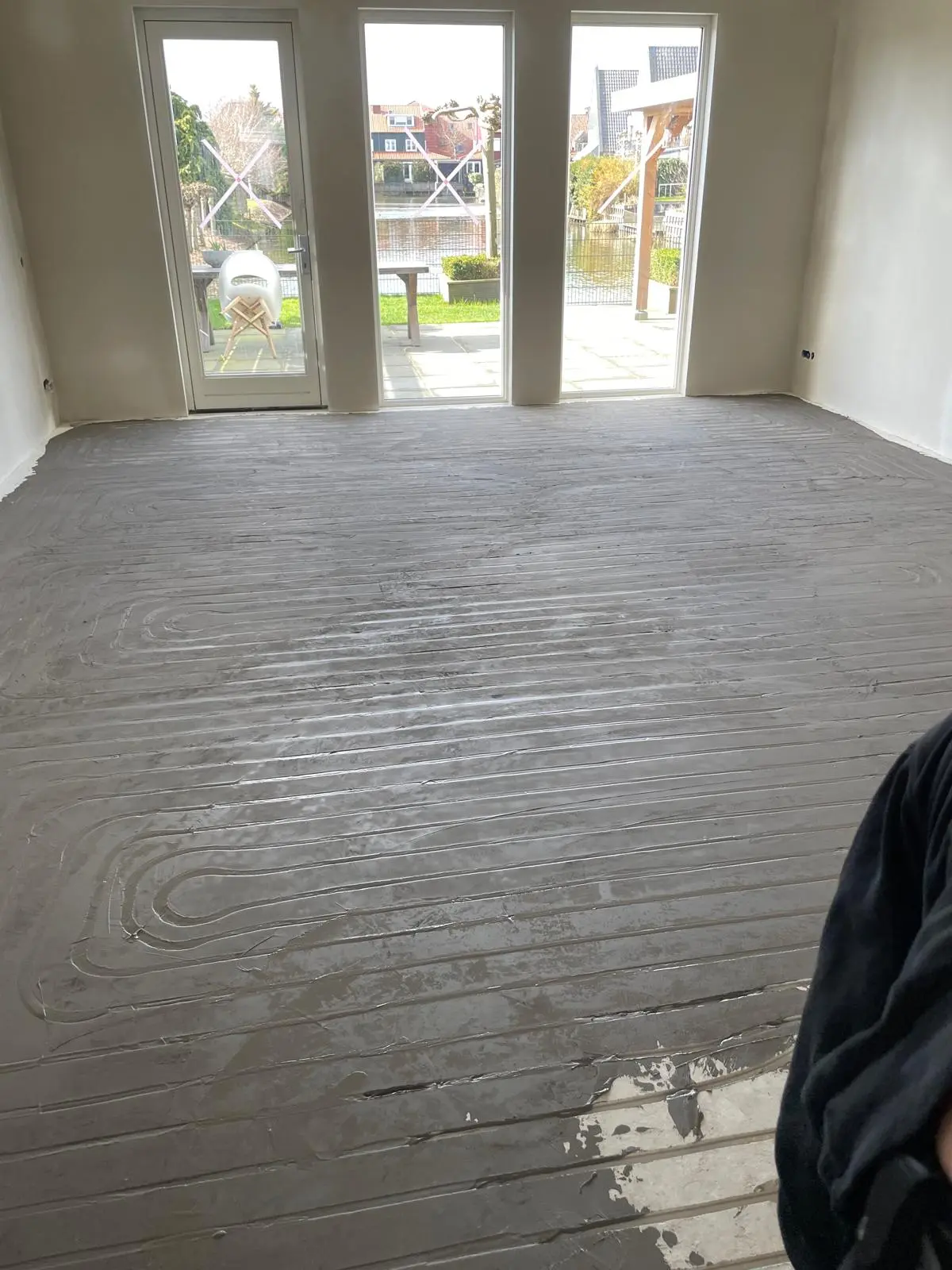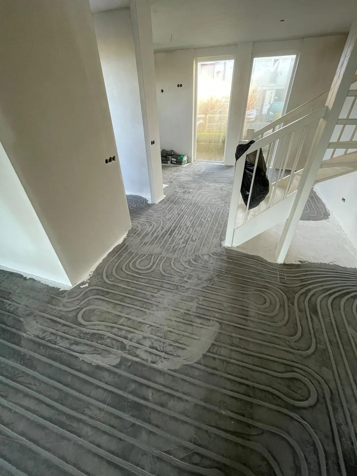 Vloerverwarming leidingen dichtsmeren en egaliseren